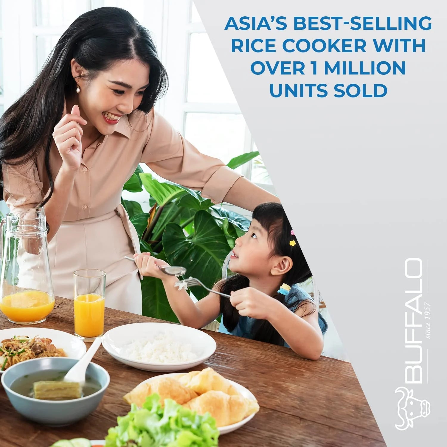 Patented Buffalo Clad stainless steel is scratch-resistant, non-stick, and non-toxic for healthier cooking. This rice cooker does not contain unhealthy chemical coatings and does not causes adverse food reactions. Asia's best-selling rice cooker with over 1 million units sold!