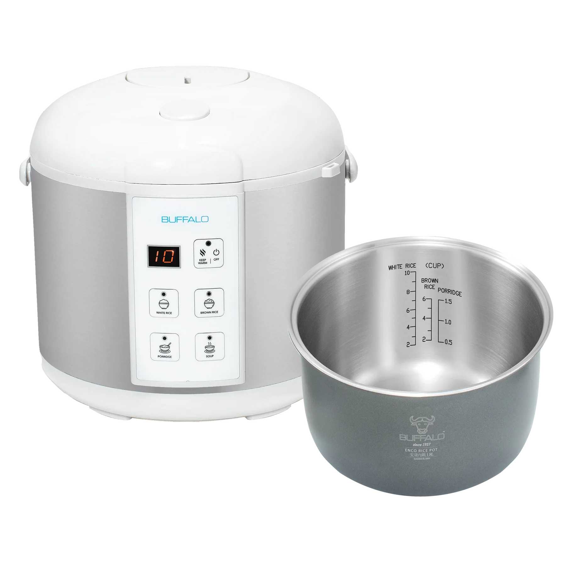 Cook delicious rice every night with the Buffalo Classic series of Rice Cookers. Boasting a 10-cup capacity and a scratch-resistant stainless steel inner pot, this UL-listed rice cooker is tested and approved to ensure even heat distribution for perfectly cooked rice every time.