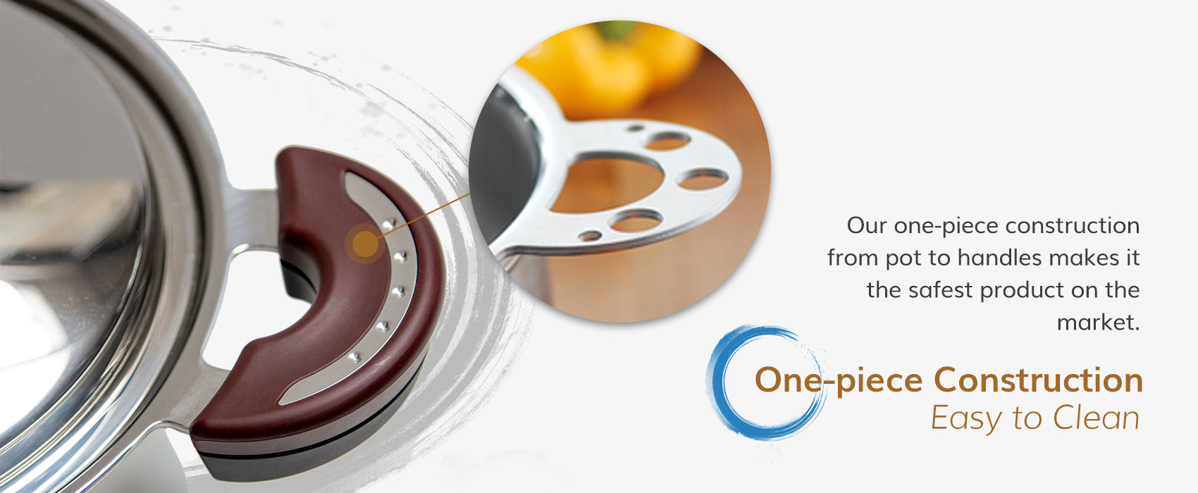 Created with only the highest quality of materials to ensure that your meals come out perfect every time, this pot has a one-piece design so you never have to worry about loose or broken handles. Plus, no harmful materials or coatings are used to protect all family members.