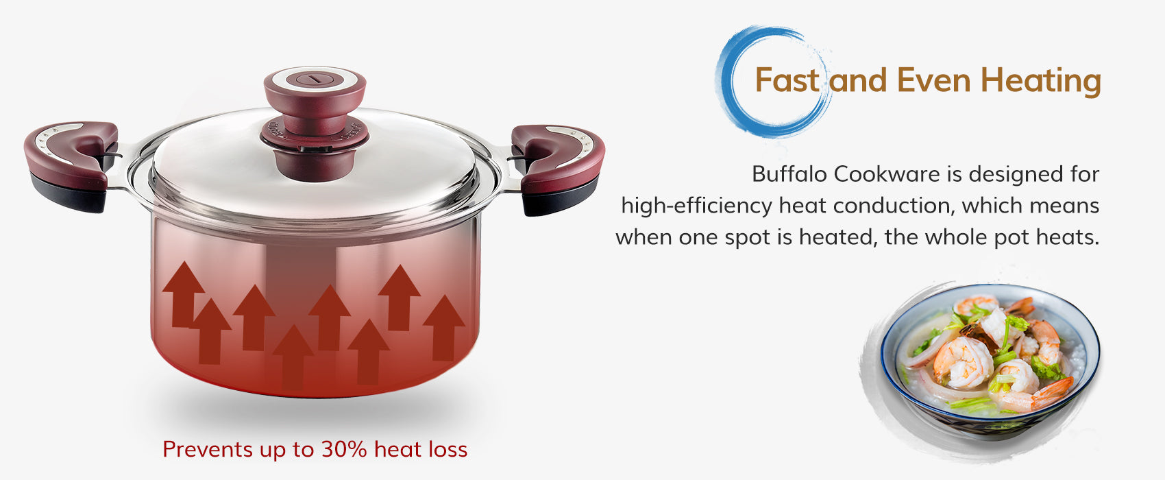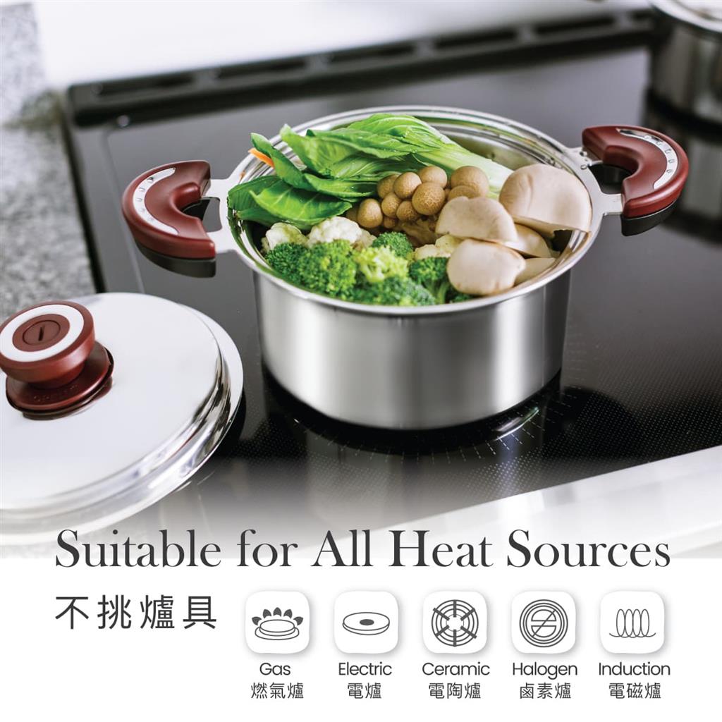 Even, consistent heat transfer is faster, more efficient, and saves energy. The adjustable air ventilator makes sure the soup, or any liquid contents will not overflow and locks in all the flavour and nutrition. This pot is a must-have for all families.