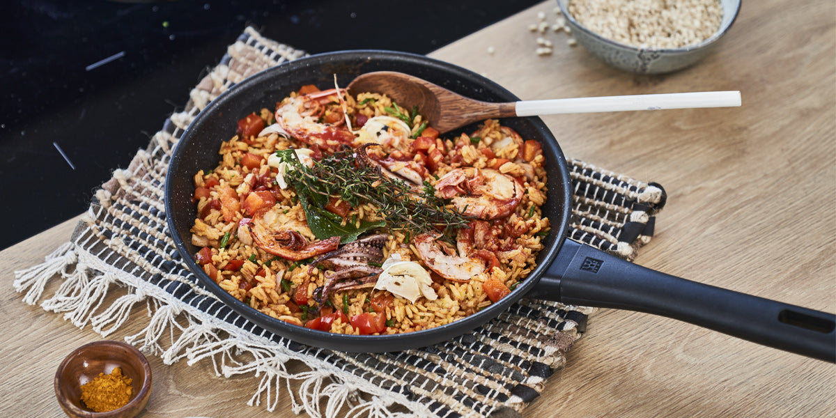 The Marquina 2pc non-stick granite cookware set is the essential set for home chefs. Prepare eggs, pancakes, paella and stir fries with this 2 pack frying pan and wok set from ZWILLING. The special design by Studio Thun from Italy makes this frying pan a visual delight. Duraslide - Granite non-stick coating offers 100% improved wear resistance compared with conventional non-stick coatings. The pan’s solid forged aluminium core ensures even heat distribution.