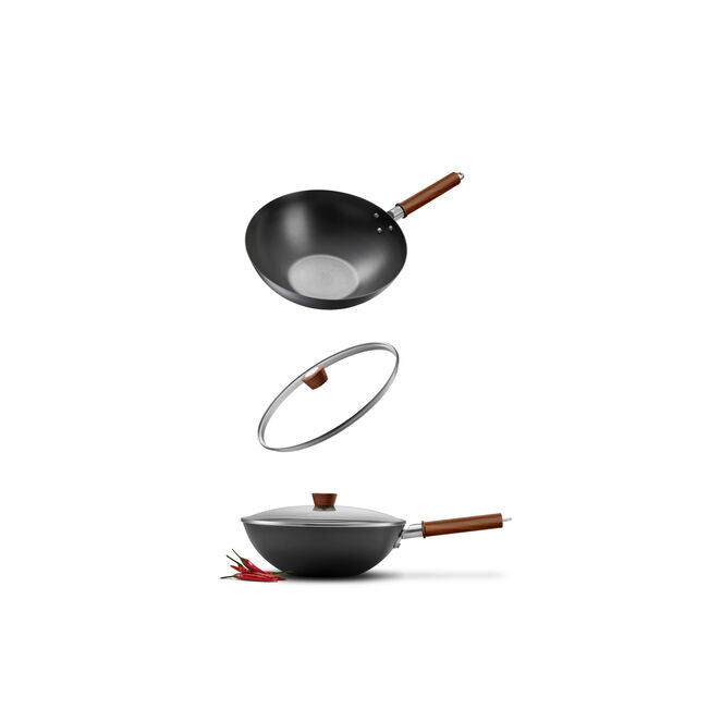 High-quality carbon steel combined with advanced heating technology ensures fast and even heat distribution; it takes less than a minute for the wok to heat up to 356°F, the ideal temperature for stir frying. The Carbonitriding technology makes the wok extremely corrosion-resistant and safe to use with metal utensils. The wok base is suitable for all stovetops, including induction.